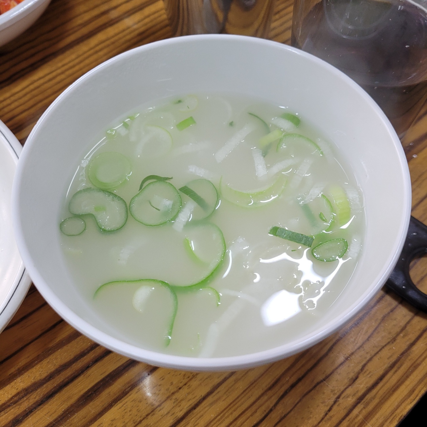 곰탕처럼 뽀얀 국물인데 제 입엔 맛있는 국물은 아니어서 한 번만 먹고 더 추가해서 먹진 않았어요.