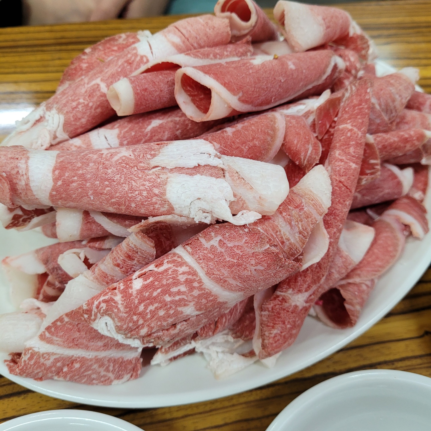 저희가 먼저 주문한 메뉴는 육회 500g, 차돌박이 500g입니다.
